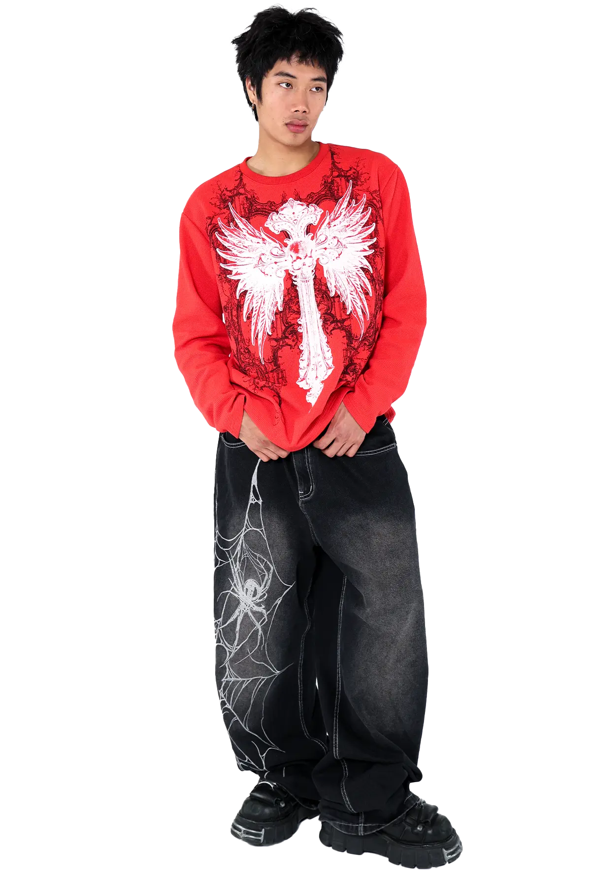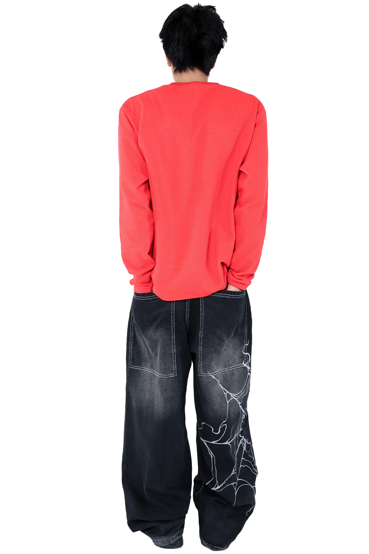 These mid-weight denim jeans are crafted for durability and everyday comfort, with premium cotton that feels great and lasts. Designed with a relaxed, baggy fit & a wide leg opening, they’re made to move with you. Finished with detailed screenprint that'll last life's roughest moments.