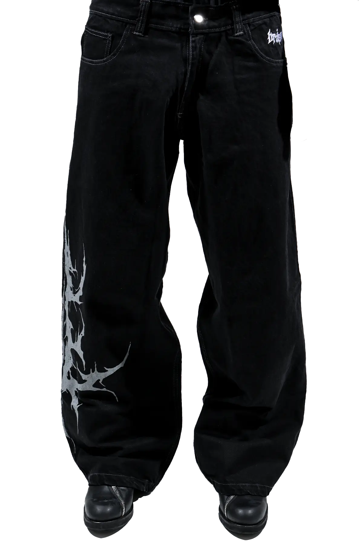 These mid-weight denim jeans are crafted for durability and everyday comfort, with premium cotton that feels great and lasts. Designed with a relaxed, baggy fit & a wide leg opening, they’re made to move with you. Finished with a detailed screen print that'll last life's roughest moments.