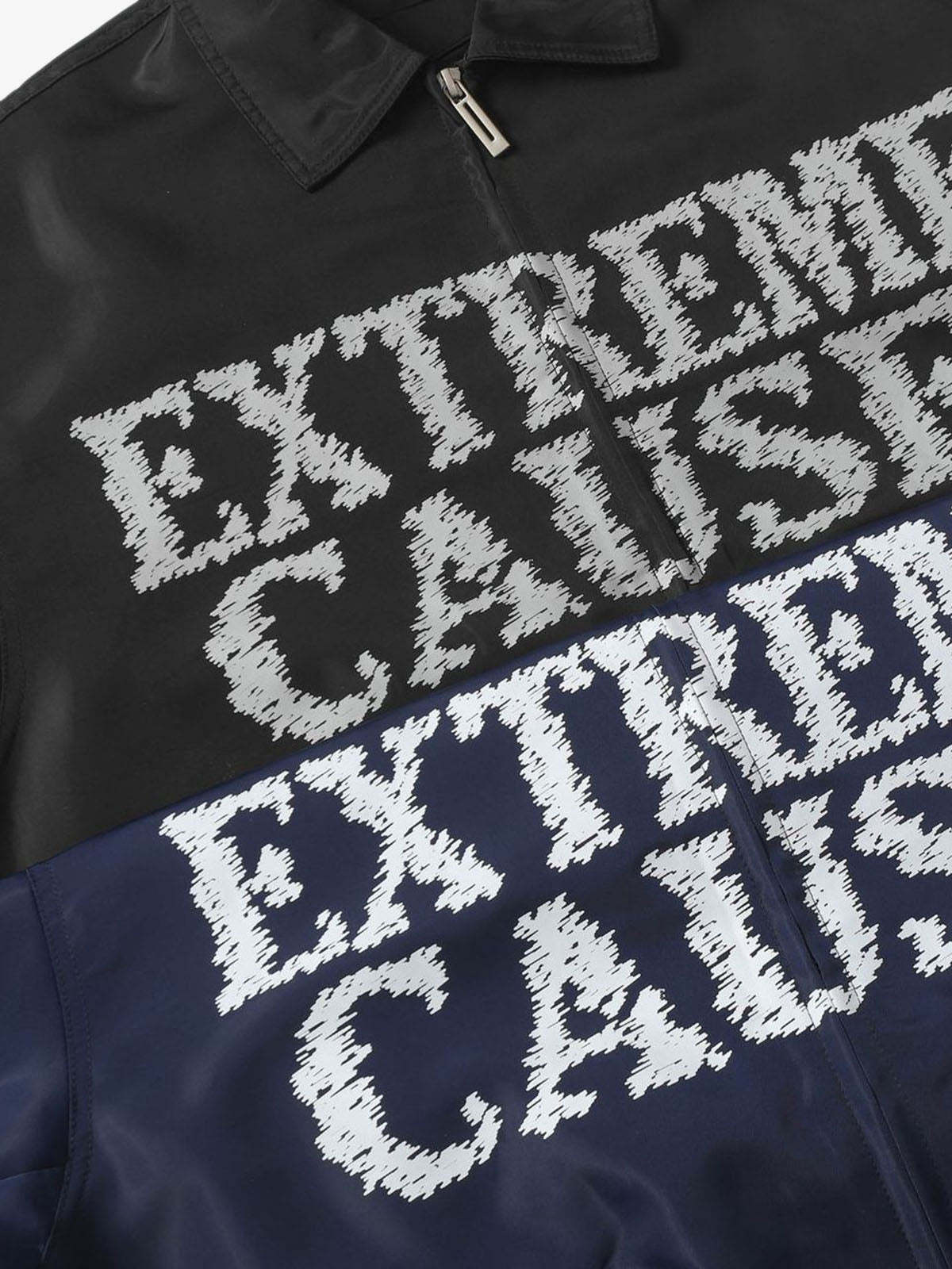 • Design Elements: Large front graphic print, zippered closure, elastic cuffs and hem