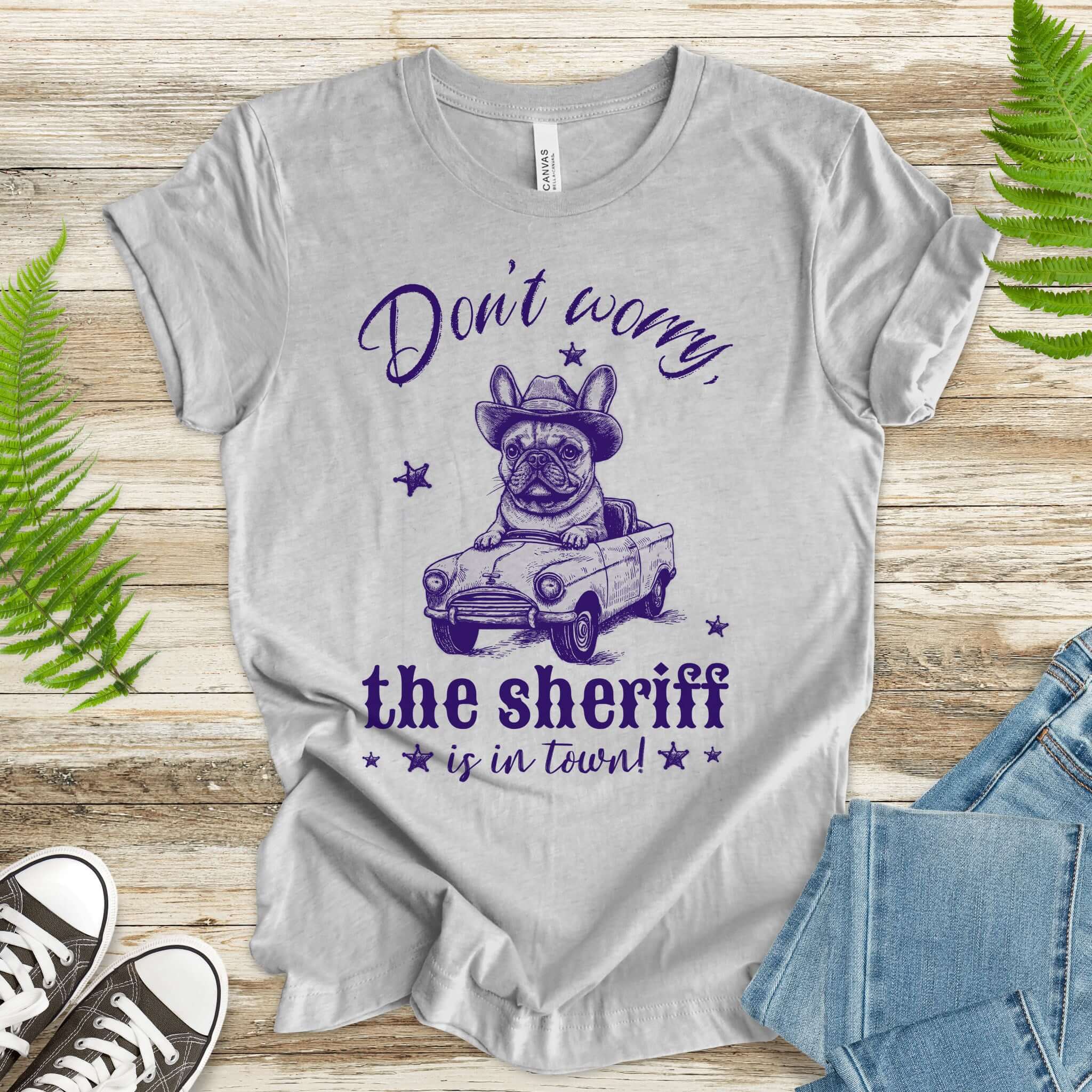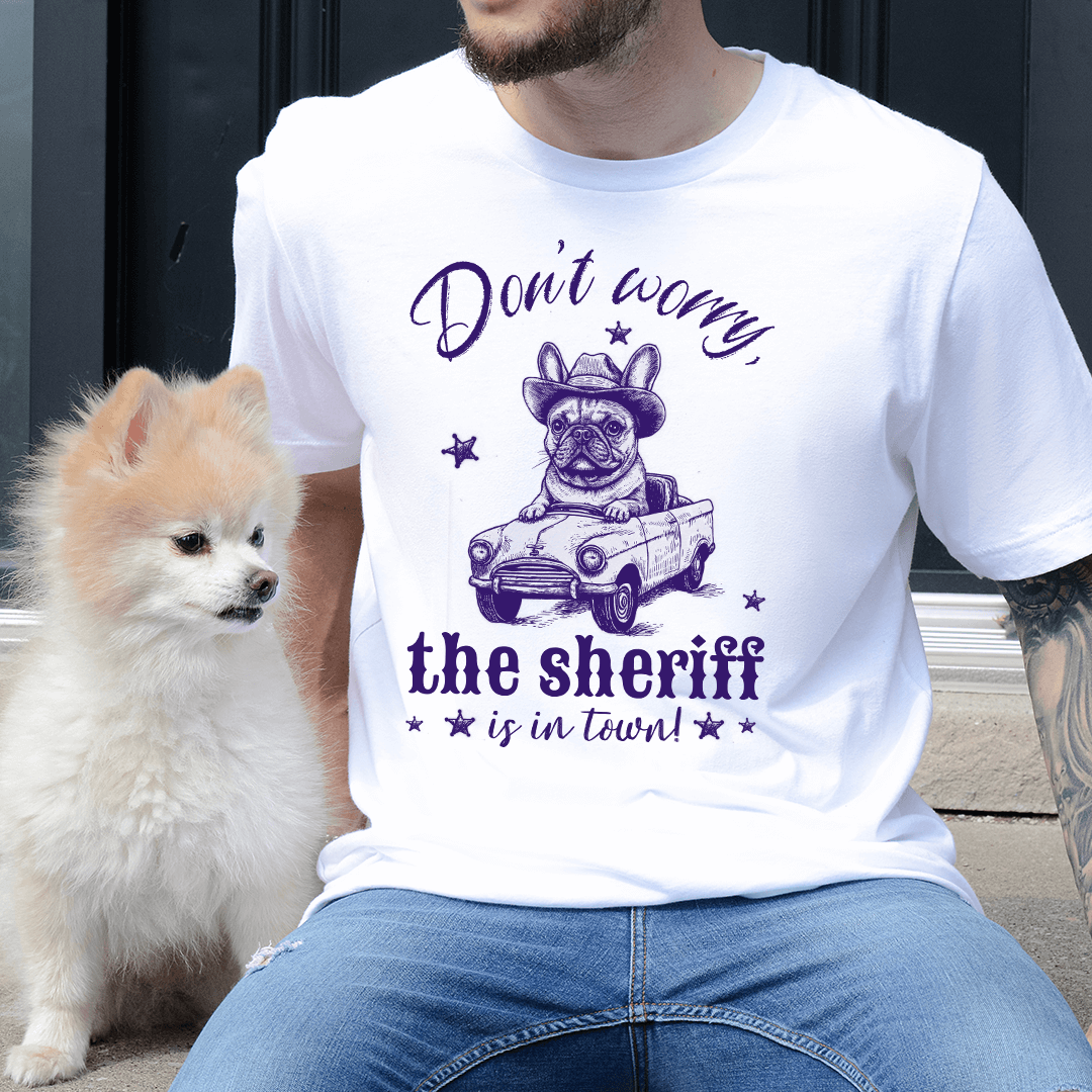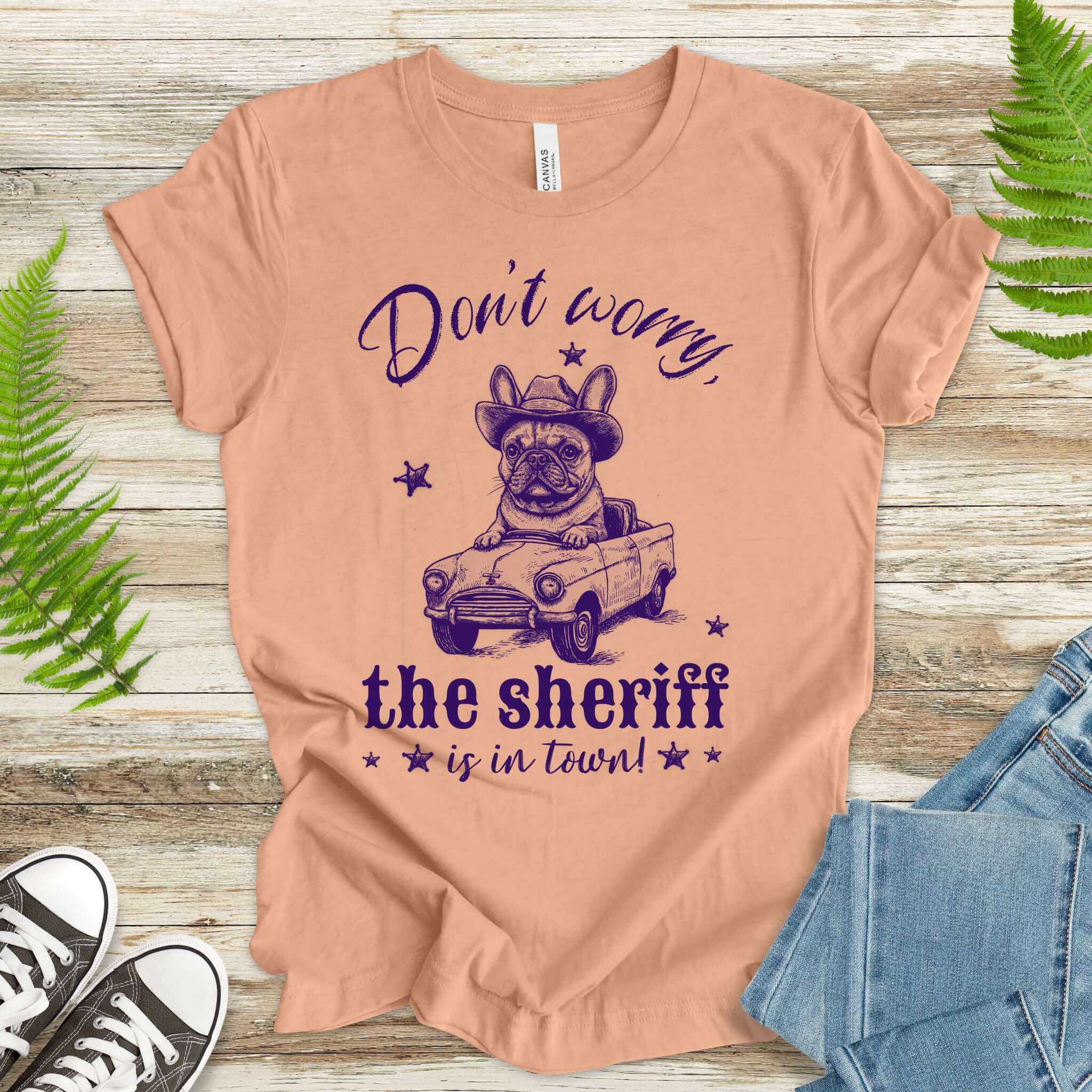 Bulldog Sheriff Retro Funny Car T-Shirt