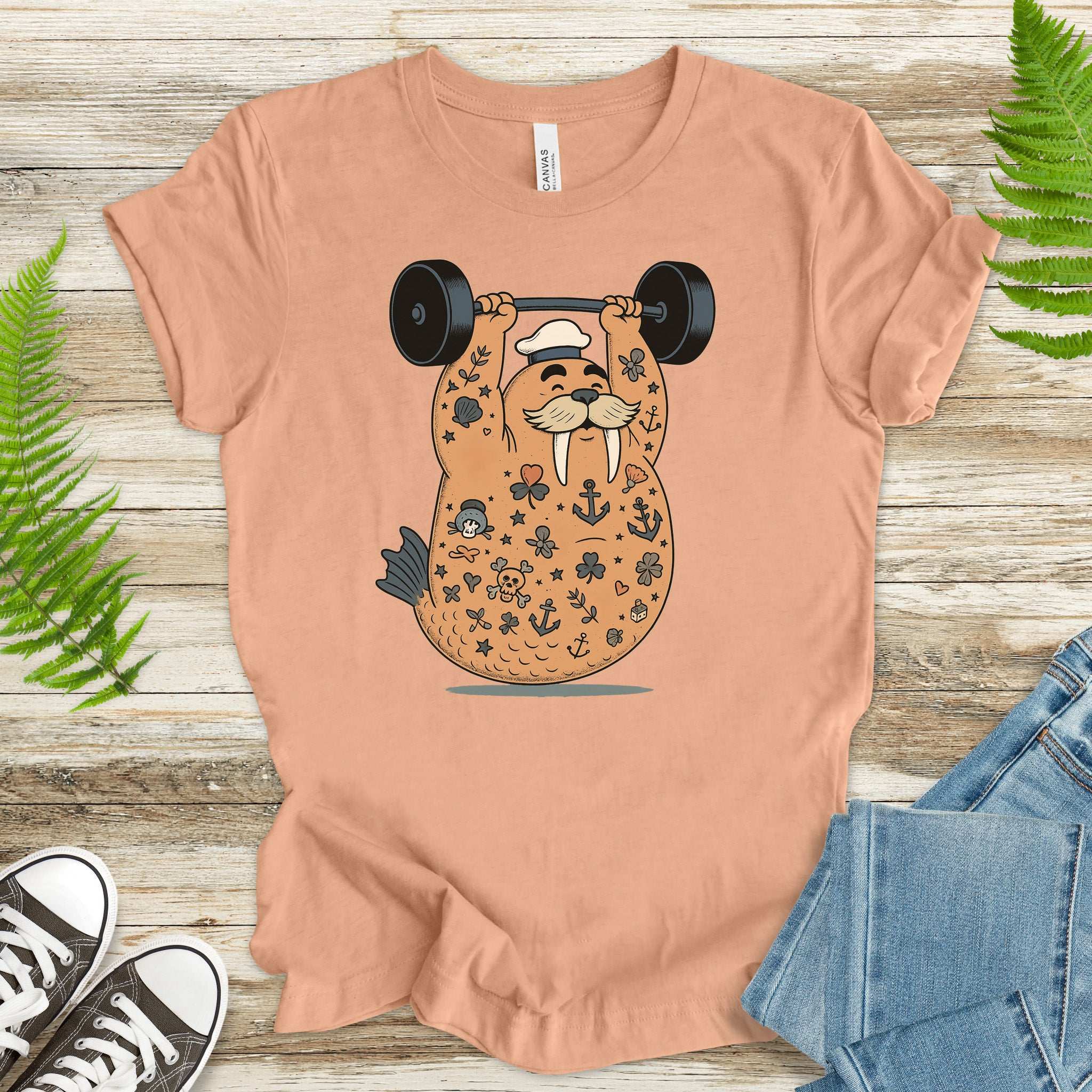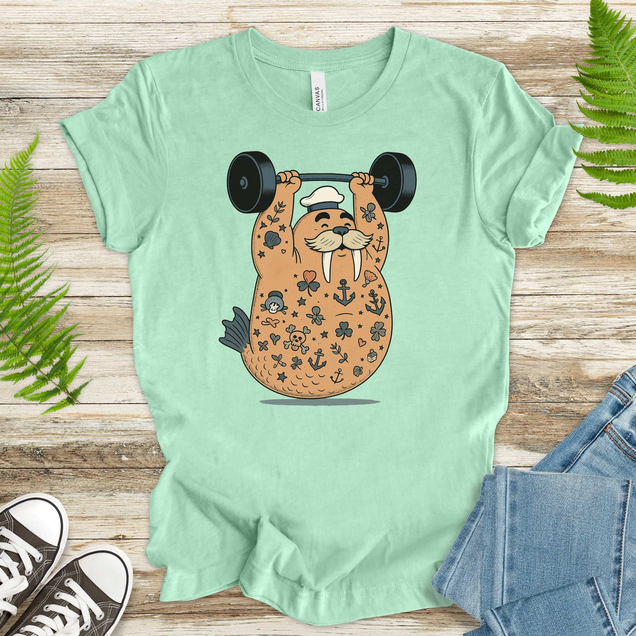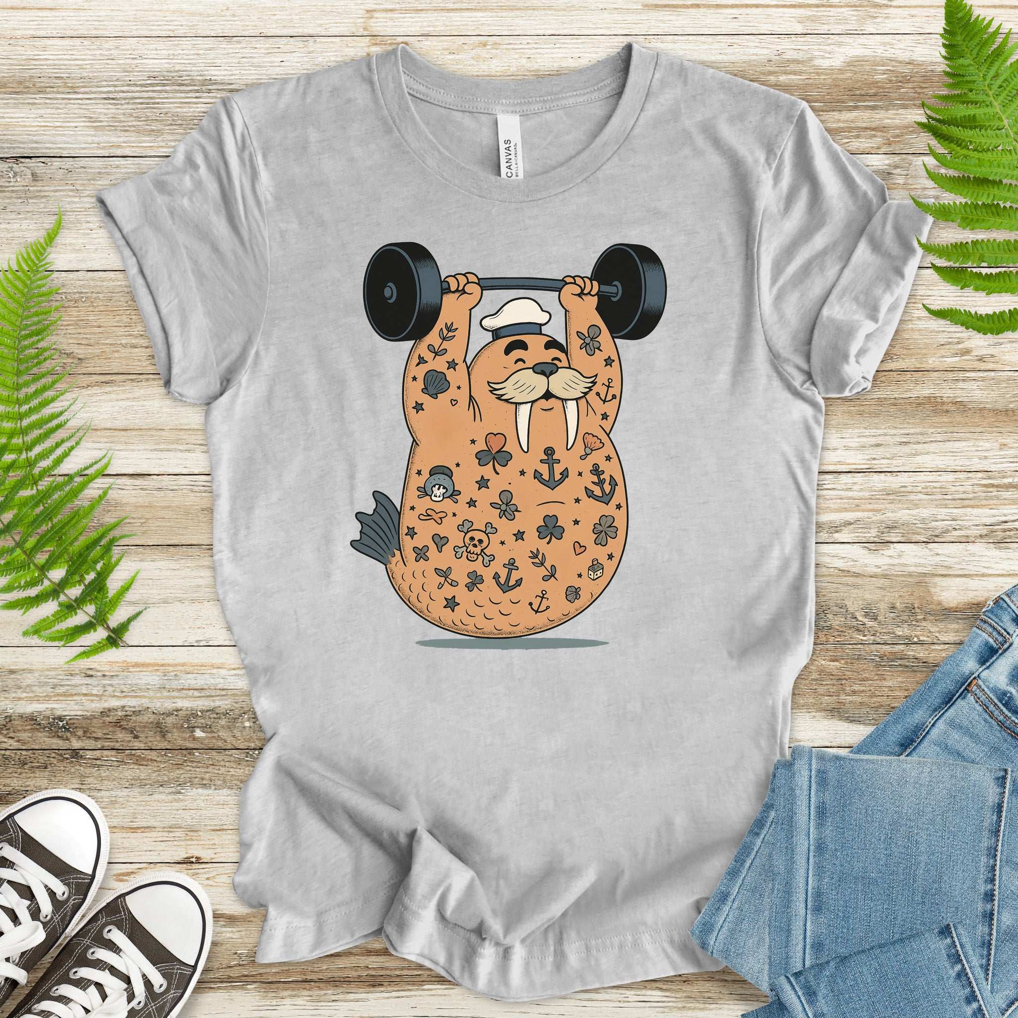 Tattooed Walrus Lifting T-Shirt – Funny Gym Sailor Sea Animal Tee