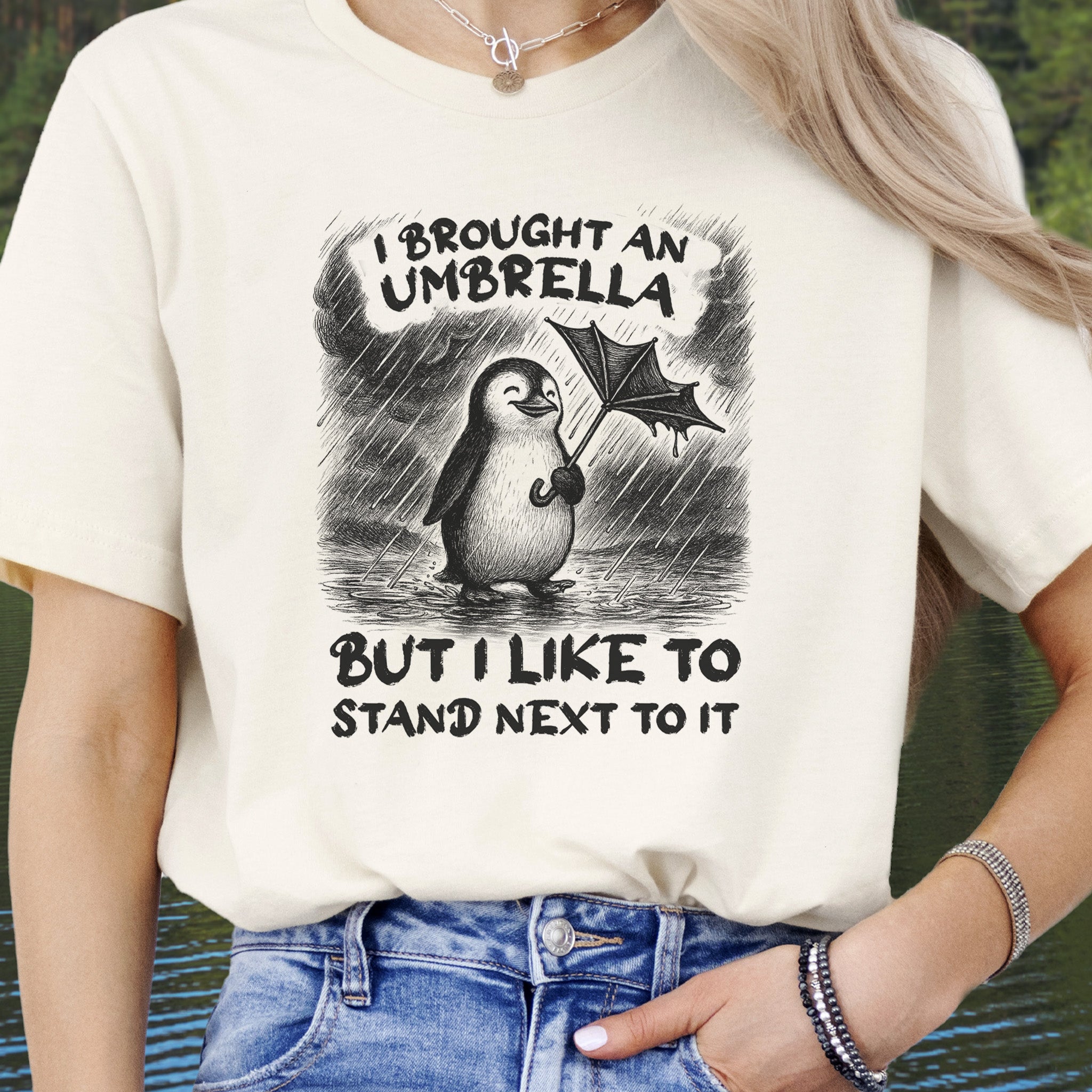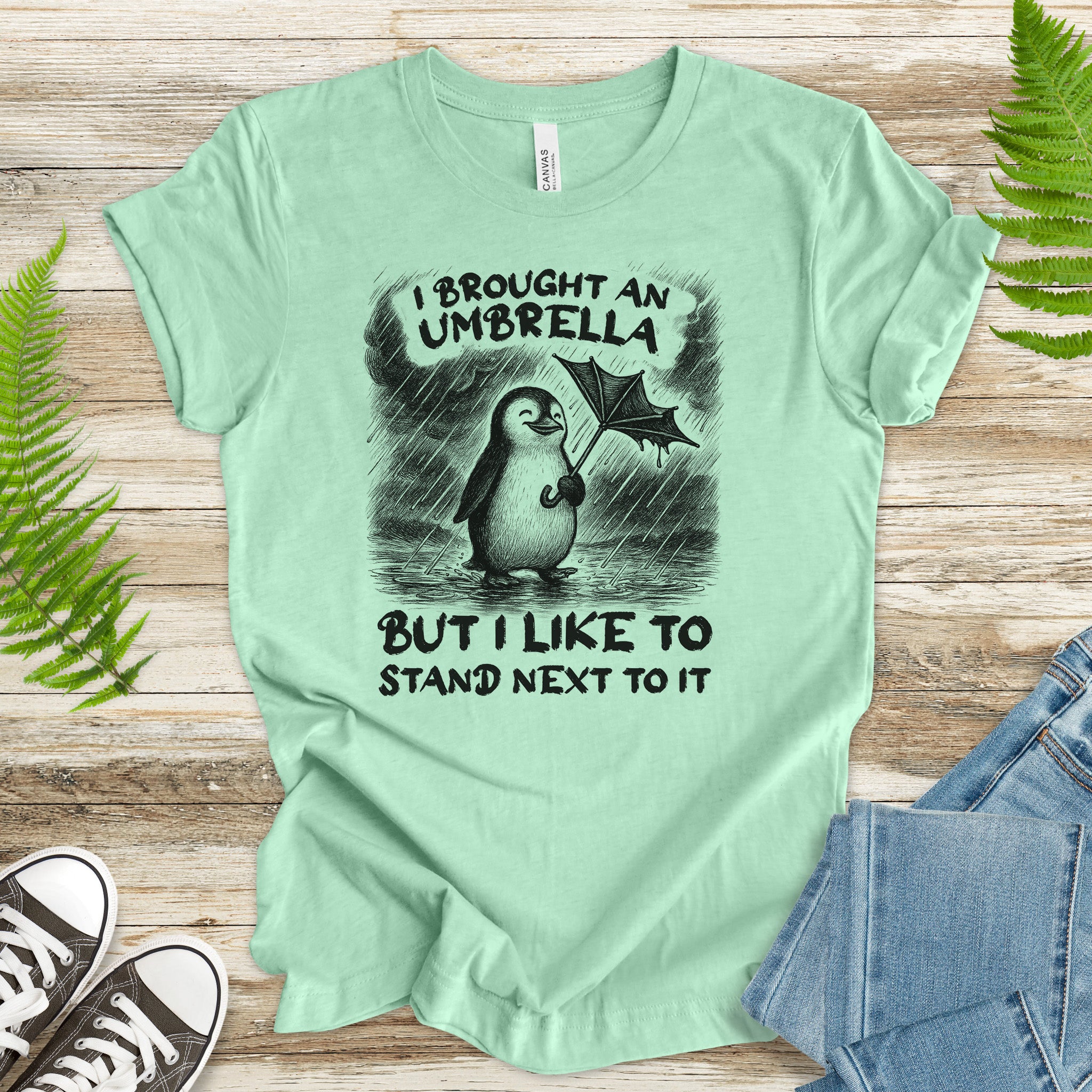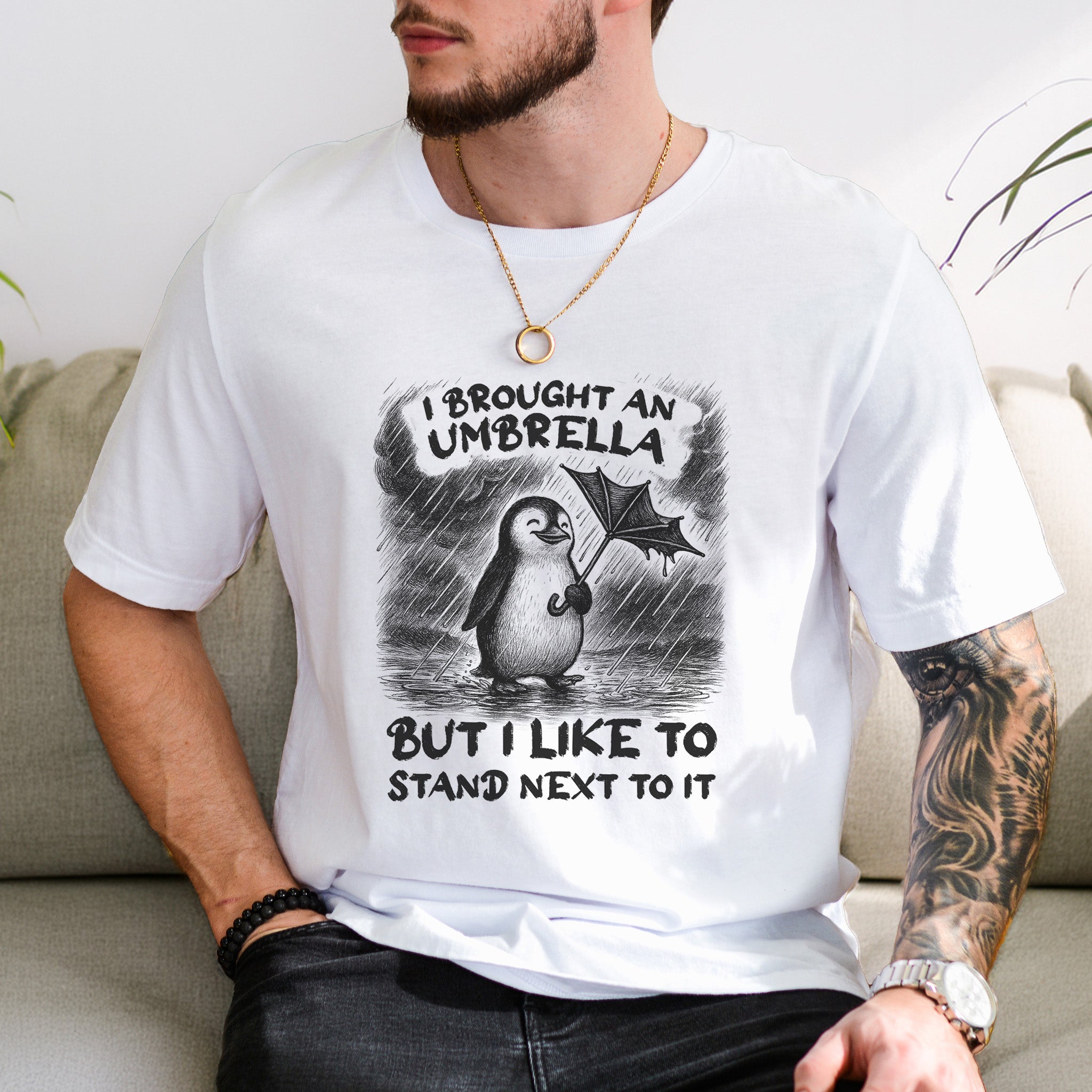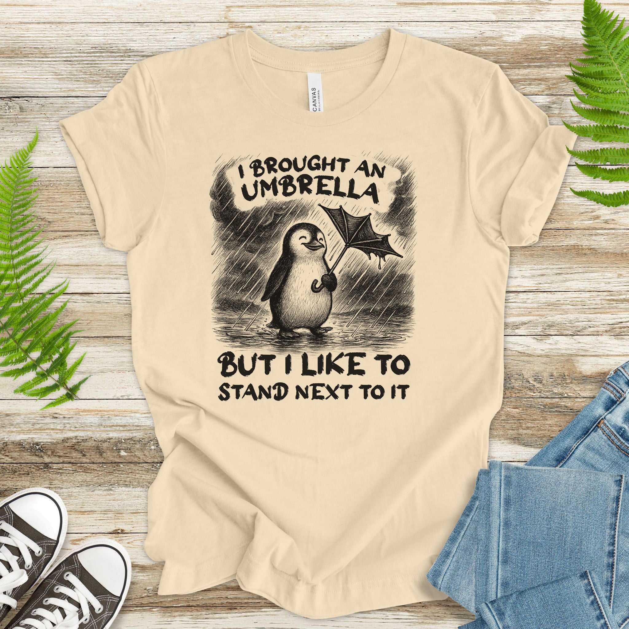 Penguin with Useless Umbrella T-Shirt – Funny Rainy Day Animal Tee