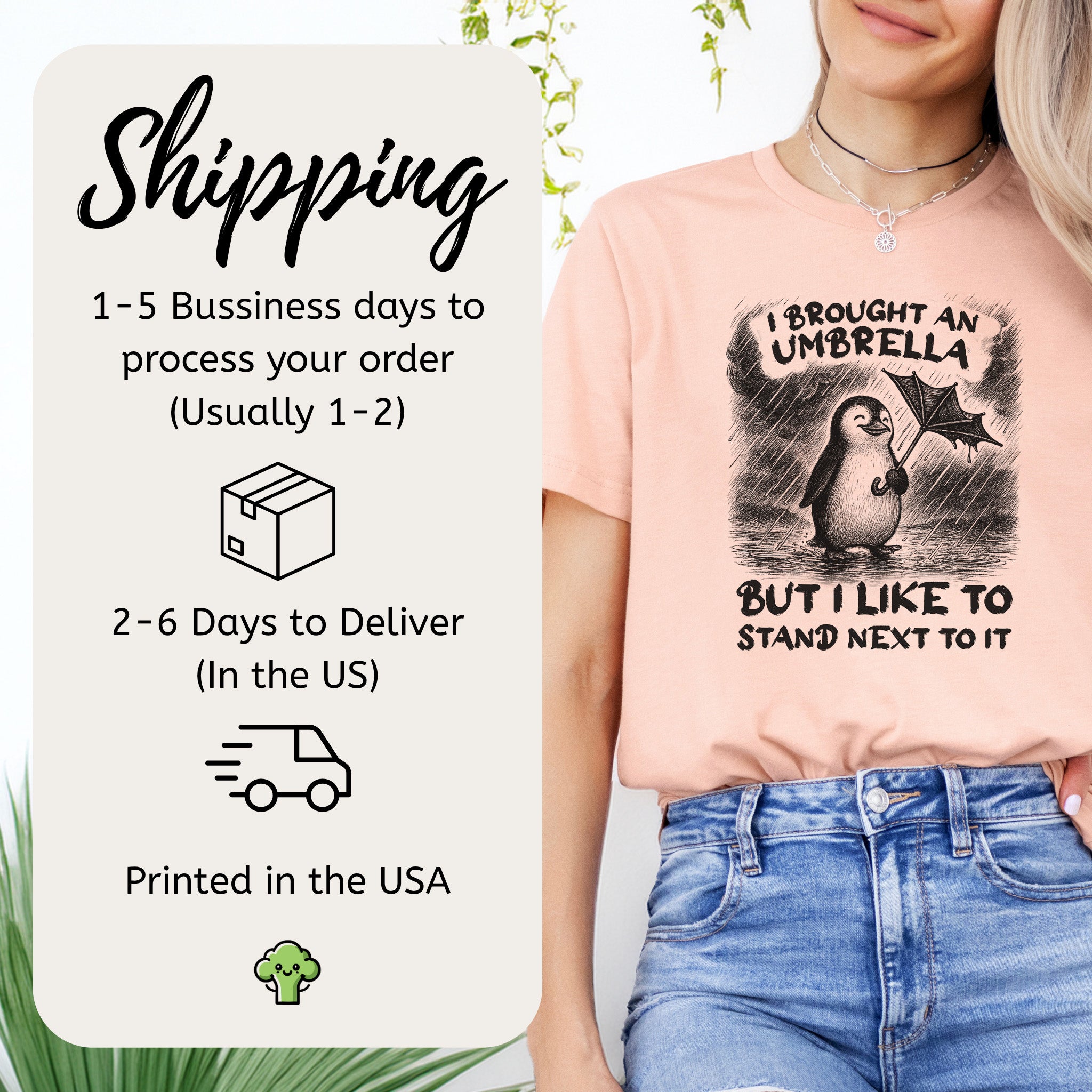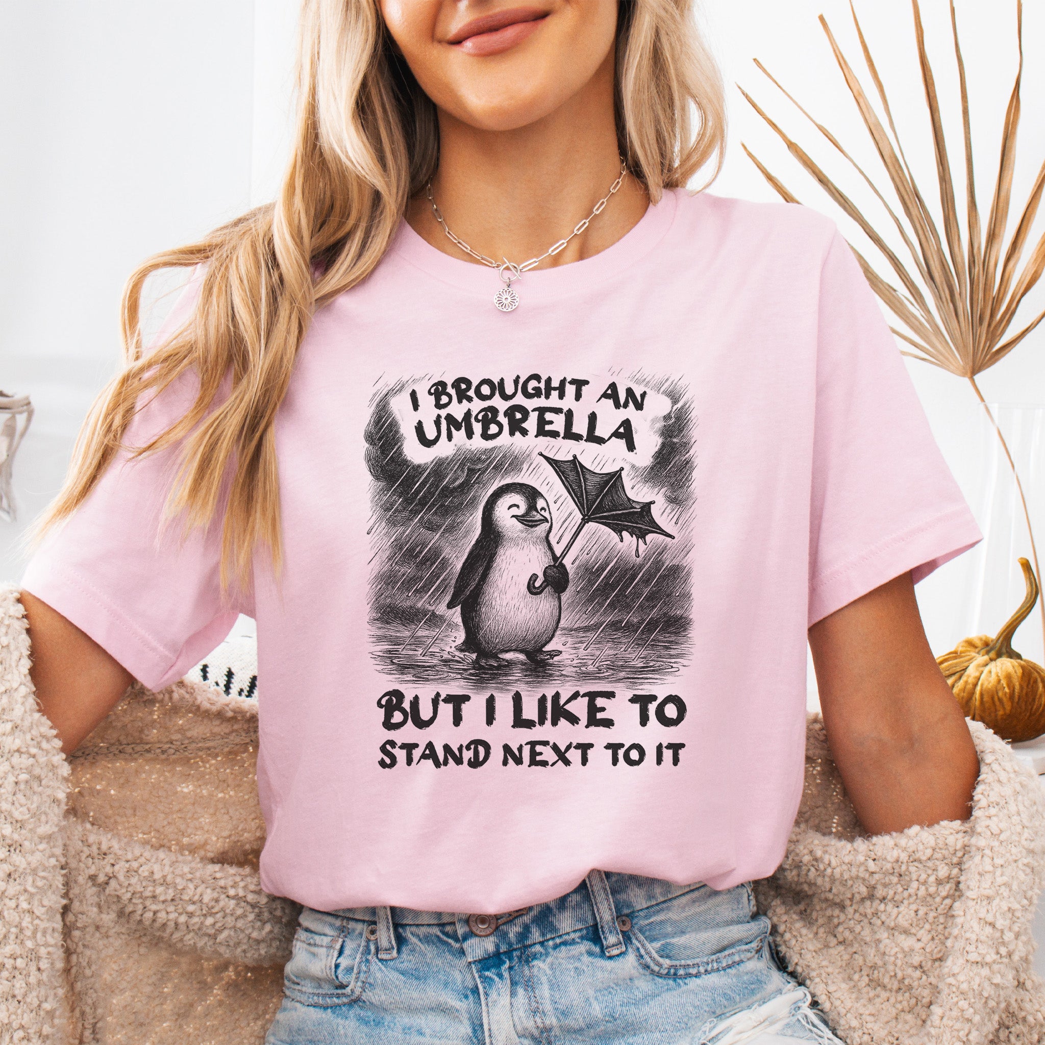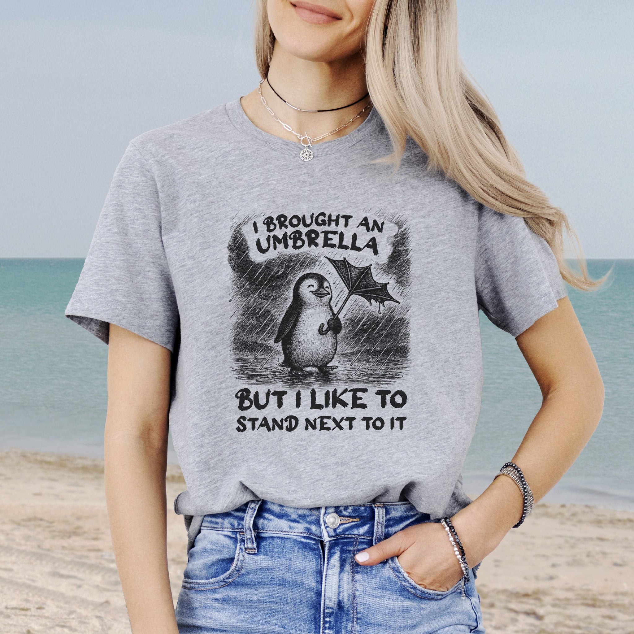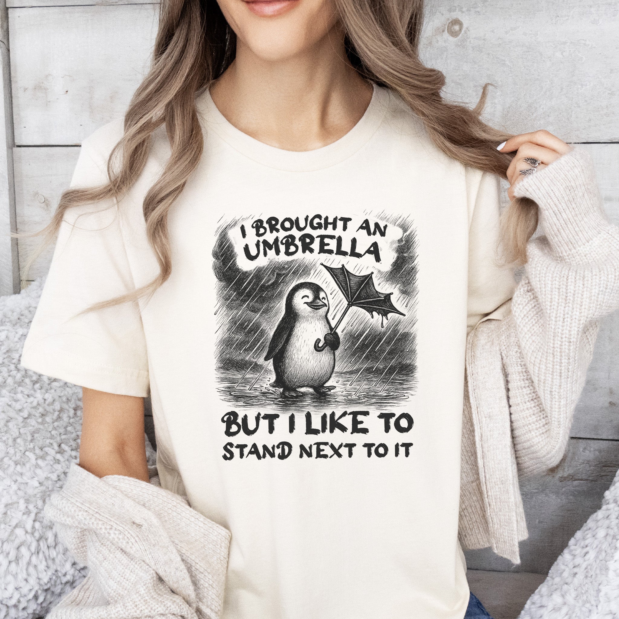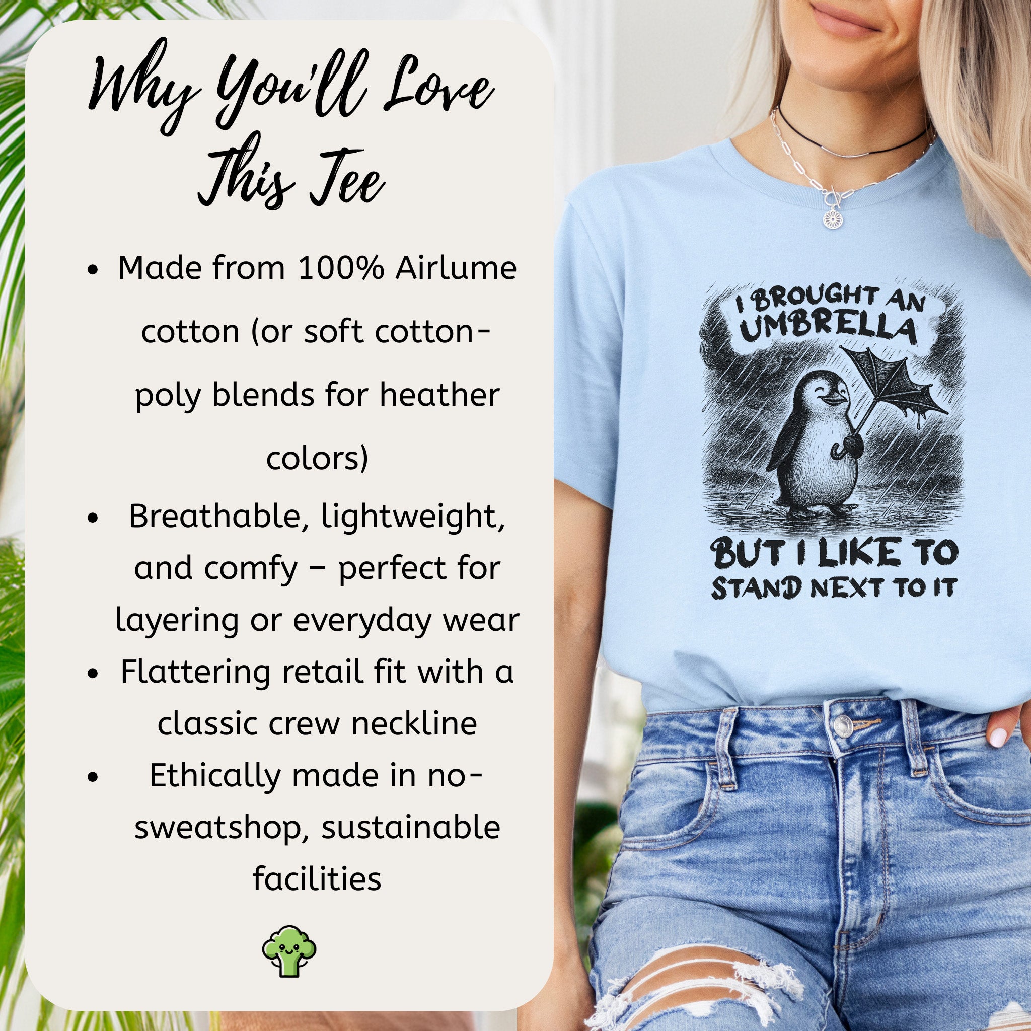 Penguin with Useless Umbrella T-Shirt – Funny Rainy Day Animal Tee