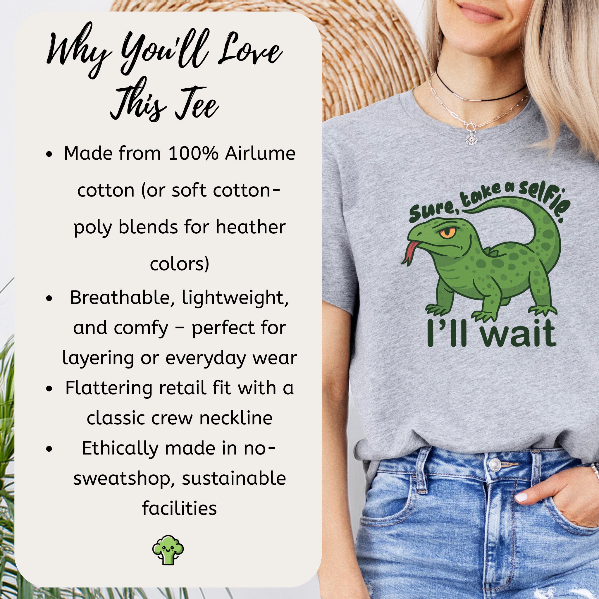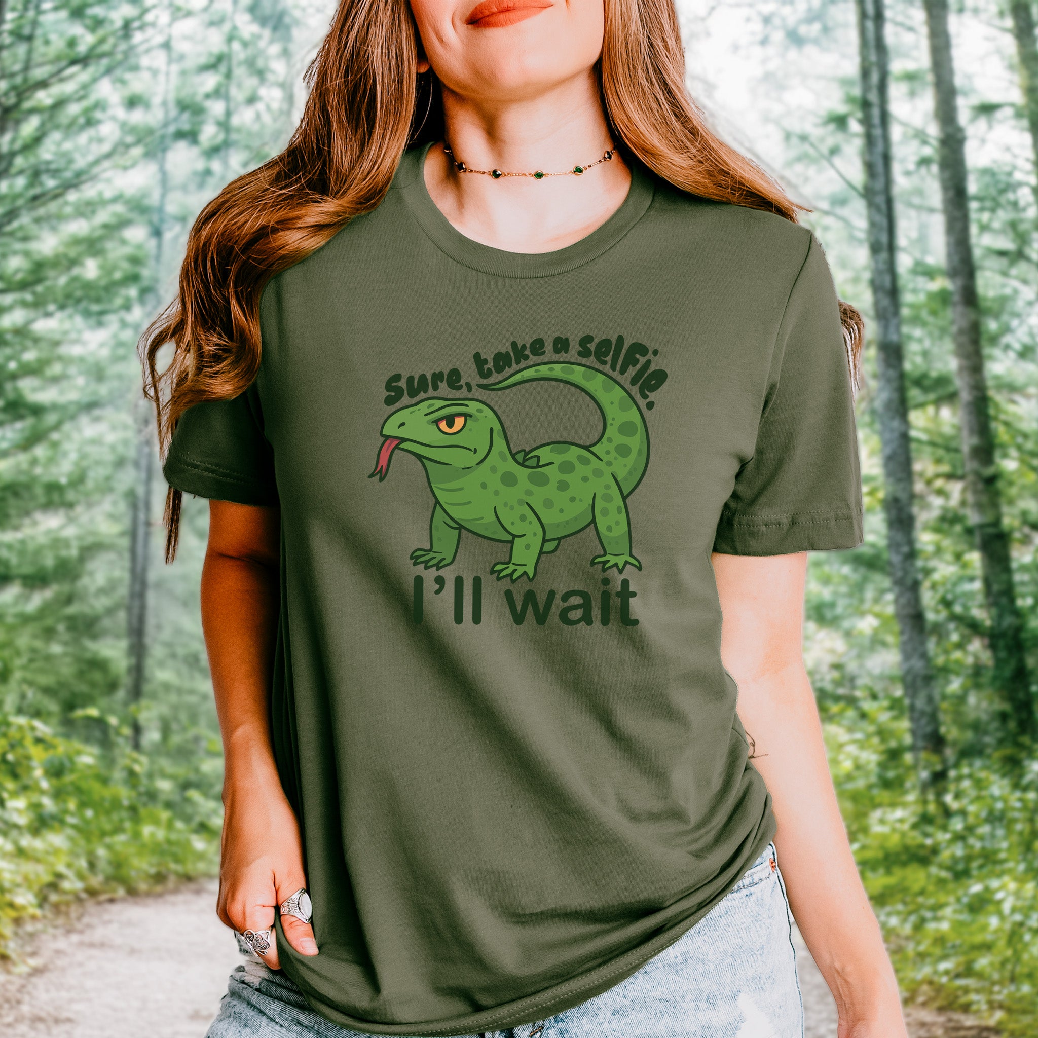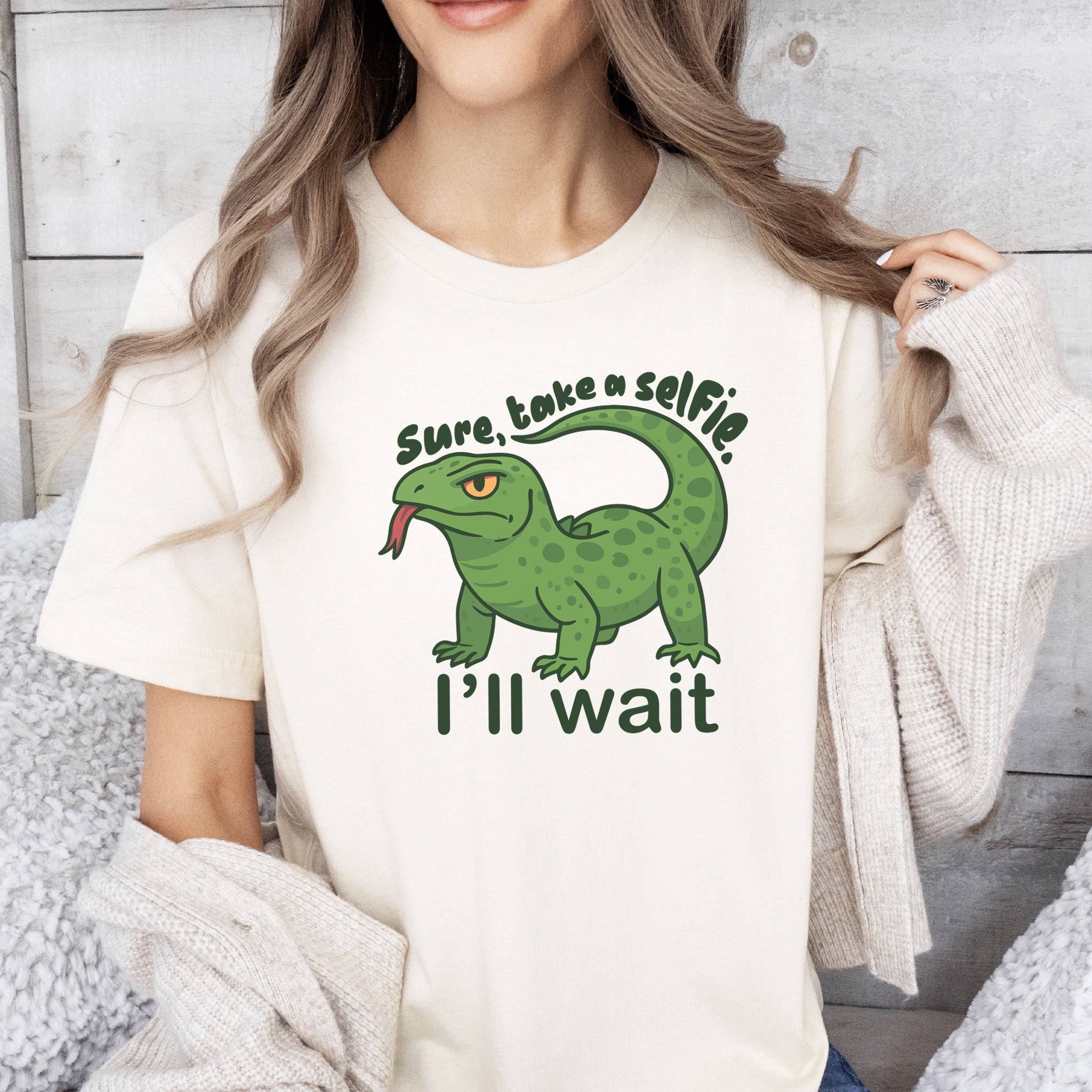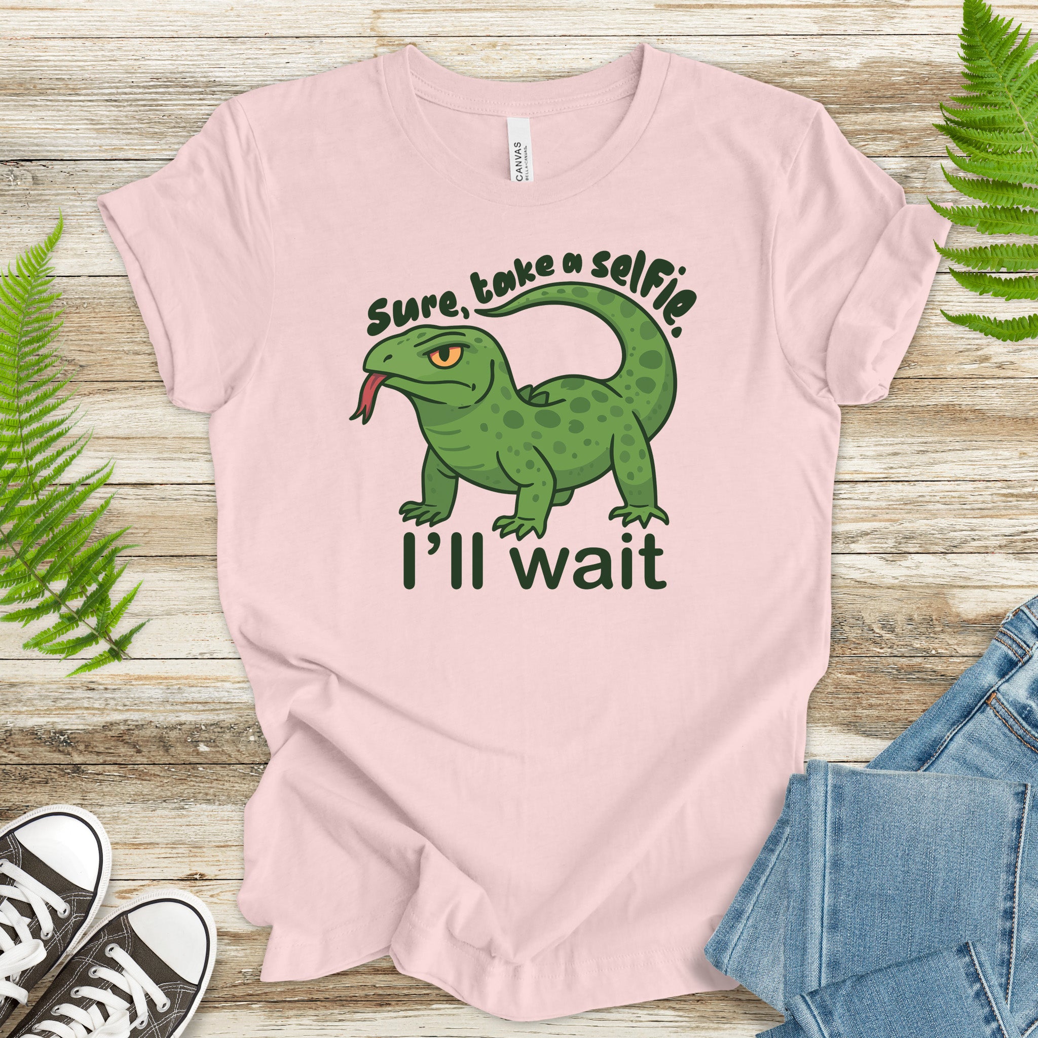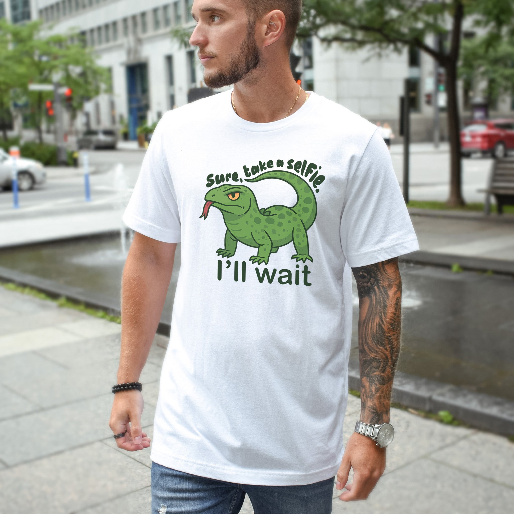 Lizard Selfie Wait T-Shirt – Funny Komodo Dragon Reptile Lover Tee