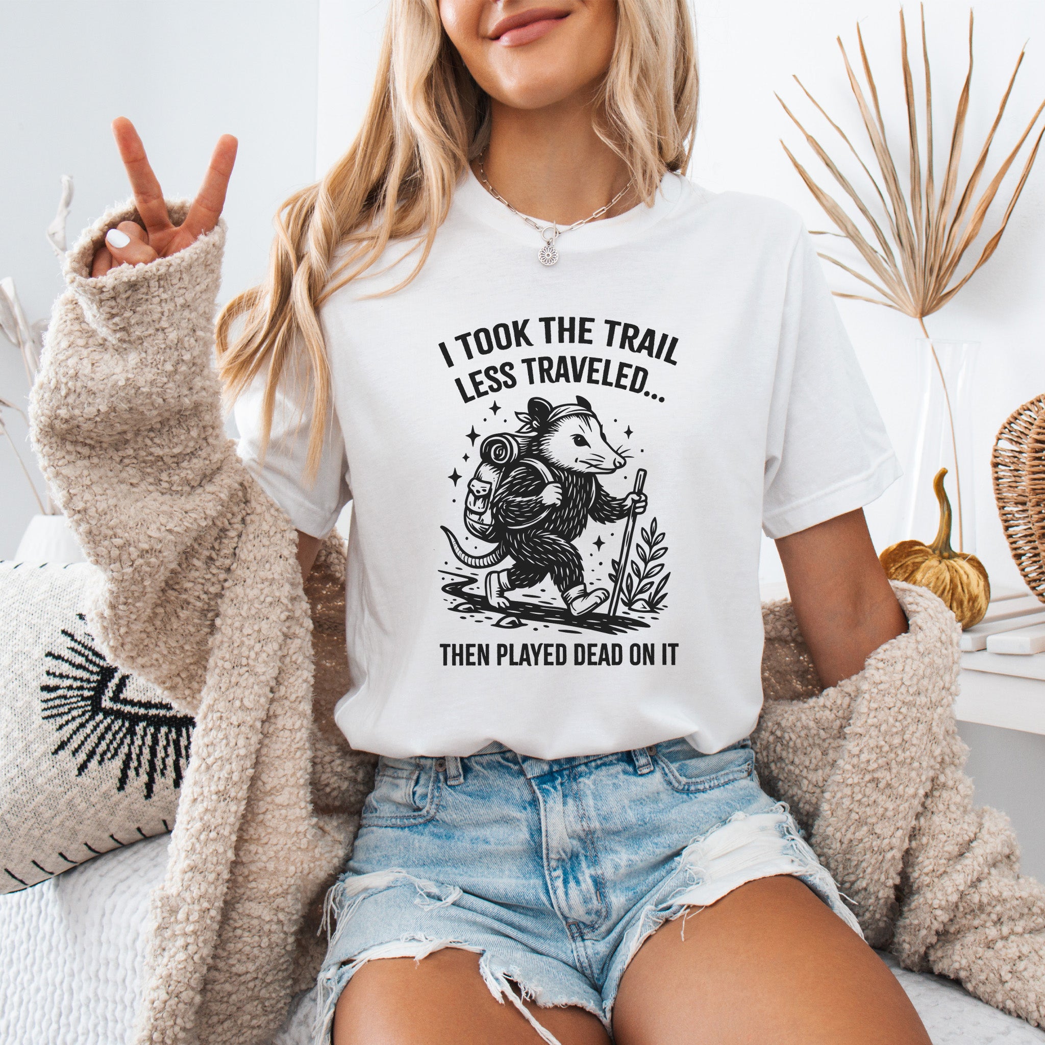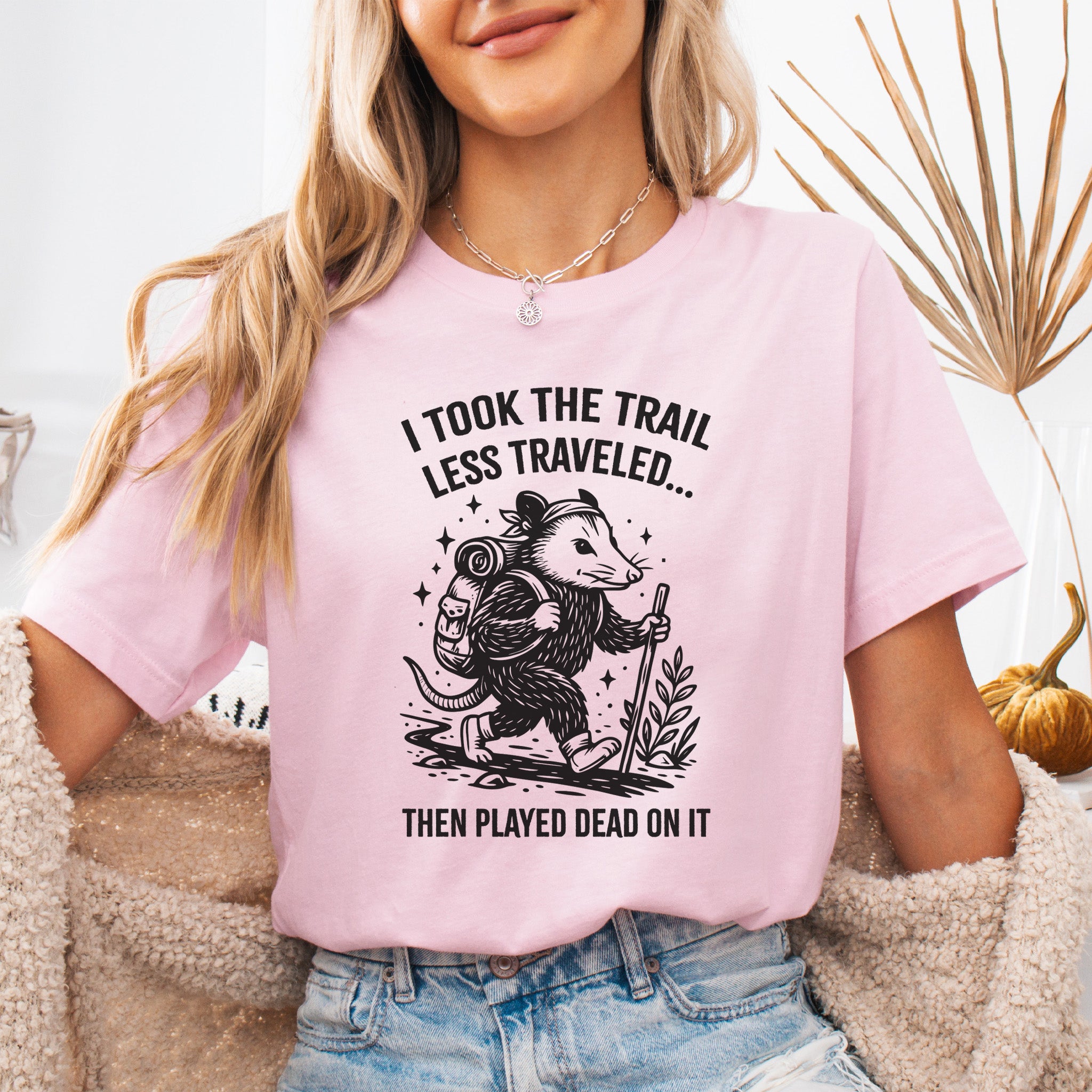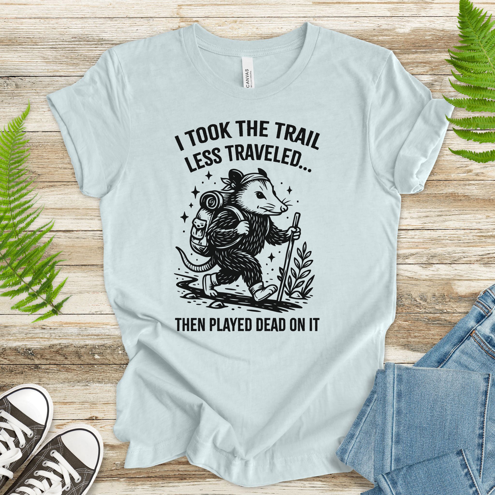 Opossum Less Traveled T-Shirt – Funny Hiking Possum Adventure Tee