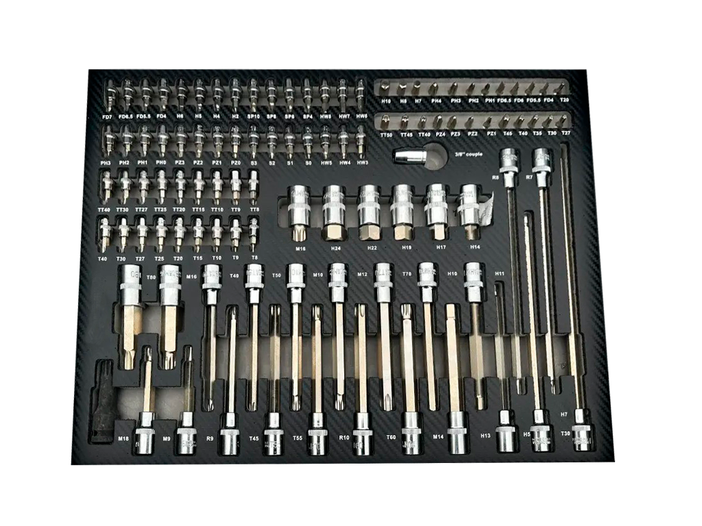 - 2º cajón: surtido de puntas torx, btr 6 puntas, 12 puntas para los 3 tamaños de trinquete.