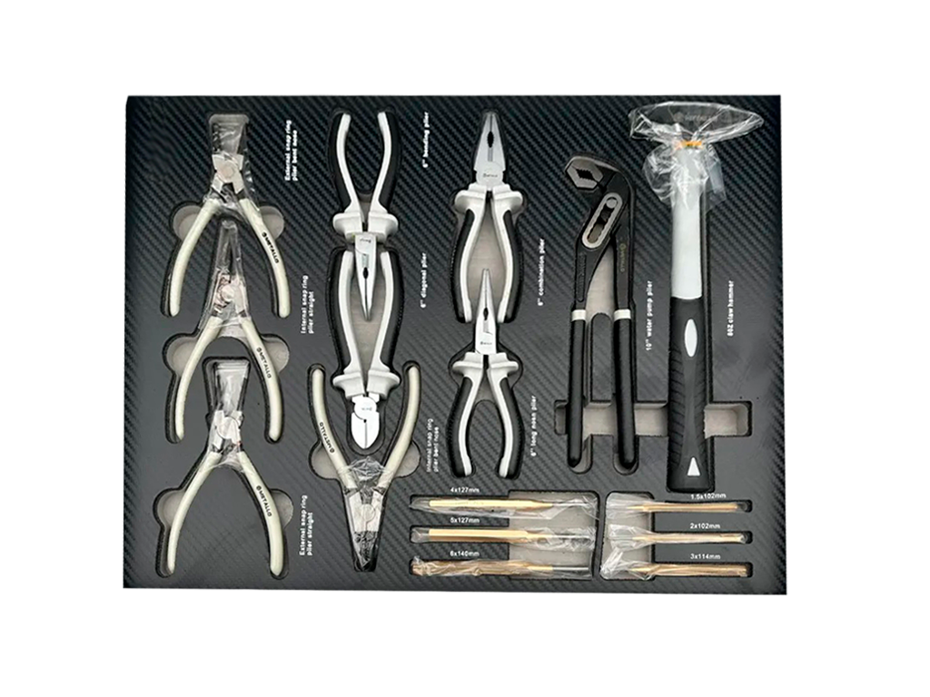 - 6º cajón: martillo, alicates multiagarre, alicates martillo, juego de botadores