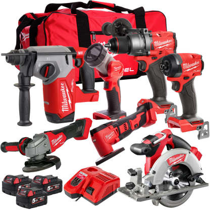 Milwaukee M18FPP7T-503B 18V 7 Piece Power Pack Tool Kit with 3 x 5.0Ah Batteries & Charger