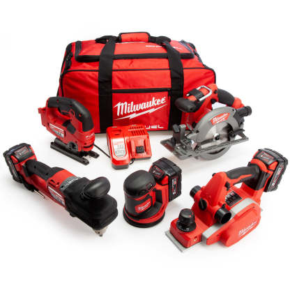 The Milwaukee M18PP5C-503B is a 5 Piece Kit specifically aimed at woodworking applications. Consisting of the M18FID3-0 Impact Driver, M18 Fuel FJS Jigsaw, M18 FCS552-0 Circular Saw, M18 BP Planer, M18 BOS125 Random Orbit Sander, 3 x 5.0Ah Batteries, Charger and a Wheeled Carry Case for transportation. Milwaukee are on a mission to completely 'cordless' the Jobsite and the M18 Cordless system offers more than 215 performance-driven solutions for heavy-duty applications.