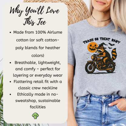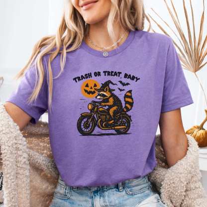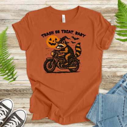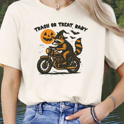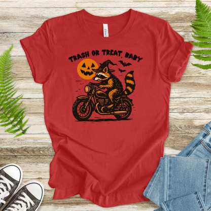Trash or Treat Raccoon Halloween T-Shirt – Biker Witch Retro Ride Tee